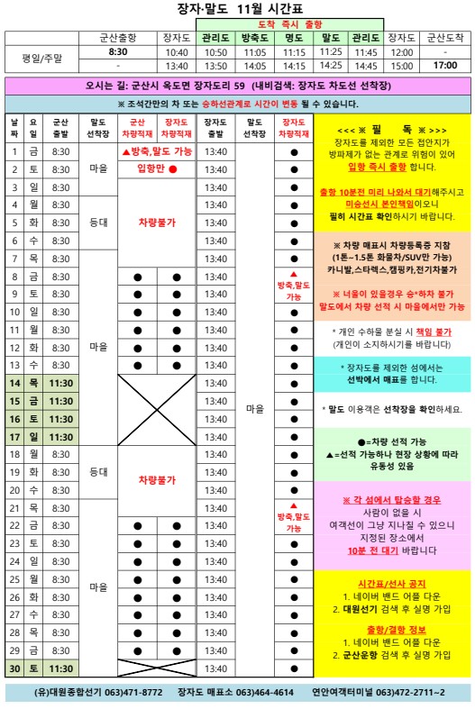 | 681 | 장자도 | 2024 | 11 | 장자도 11월 여객시간표 알림 |
