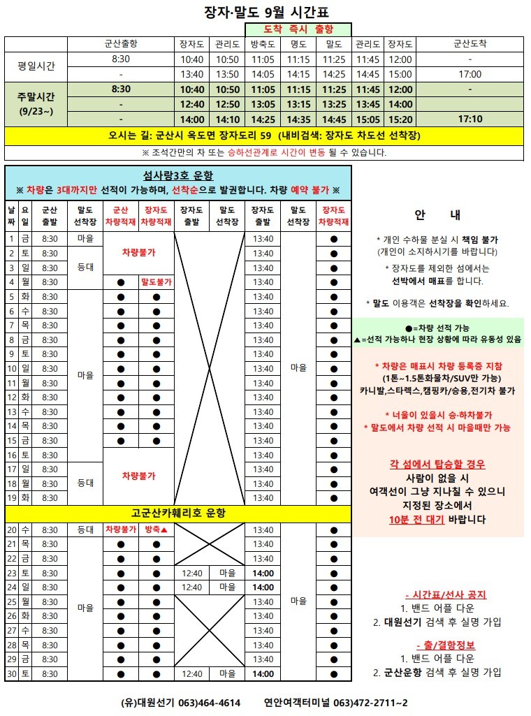 | 570 | 말도 | 2023 | 9 | 말도9월 여객터미널 시간표 알림 |