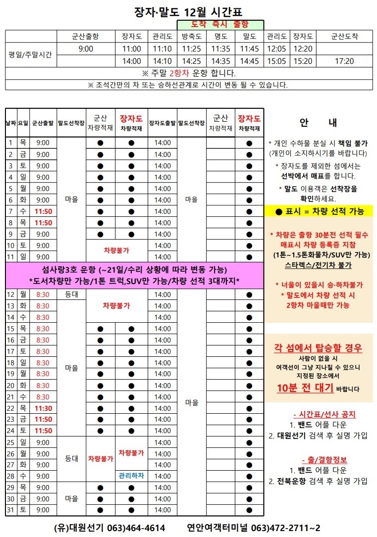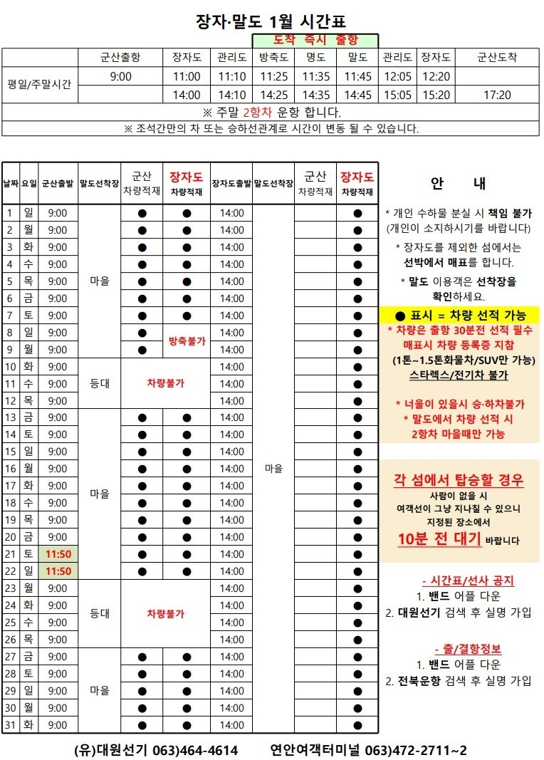 | 502 | 장자도 | 2023 | 1 | 장자도 1월 여객시간표 알림 |