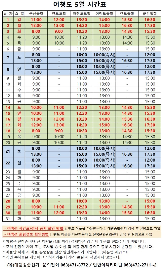 | 435 | 어청도 | 2022 | 5 | 어청도 5월 여객시간표 |