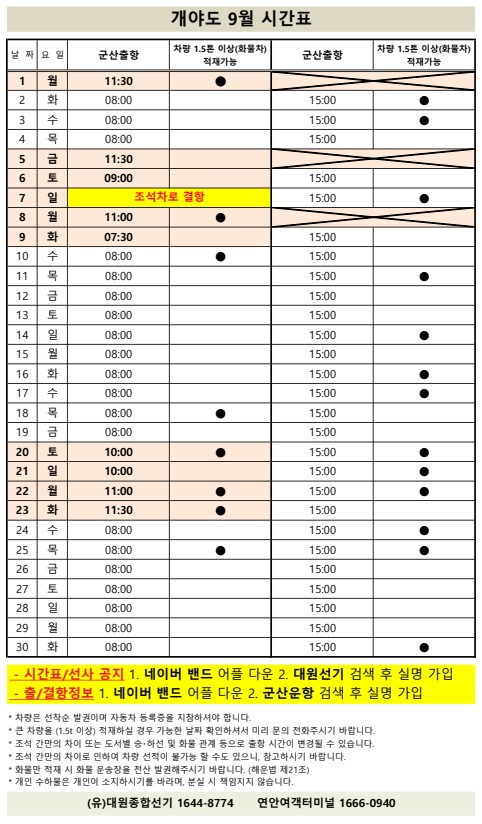 | 761 | 개야도 | 2025 | 9 | 개야도 9월 여객선 시간표 안내 |