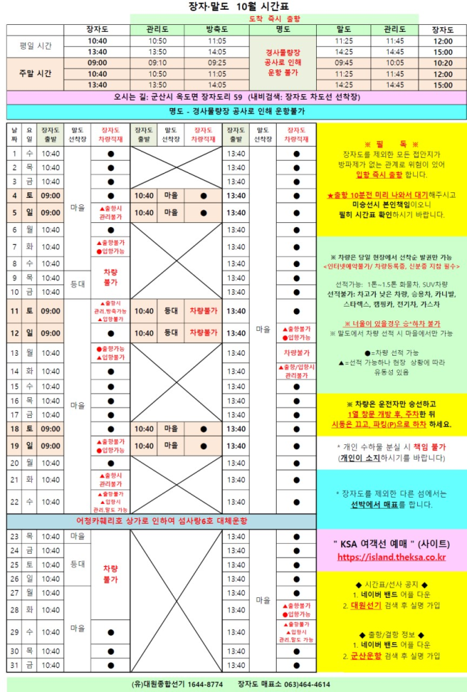 | 762 | 장자도 | 2025 | 10 | 장자도 10월 여객선 시간표 안내 |
