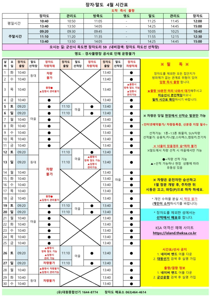 | 739 | 관리도 | 2025 | 4 | 관리도 4월 여객 시간표 안내 |