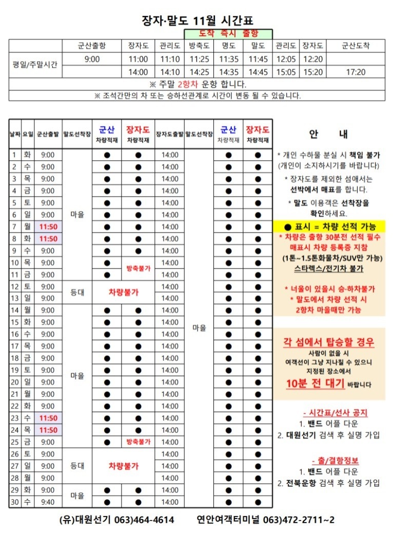 문화관광국 관광진흥과 에서 제작한 여객선 시간표 저작물은 "공공누리" 출처표시-상업적 이용금지-변경금지 조건에 따라 이용 할 수 있습니다.