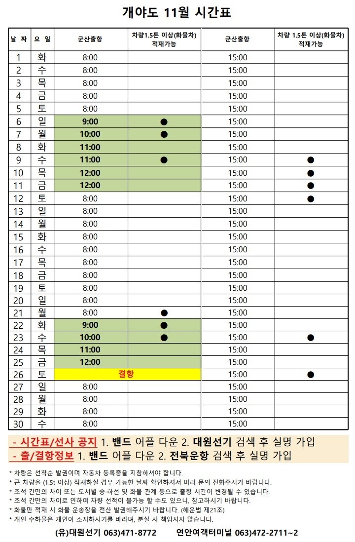 문화관광국 관광진흥과 에서 제작한 여객선 시간표 저작물은 "공공누리" 출처표시-상업적 이용금지-변경금지 조건에 따라 이용 할 수 있습니다.