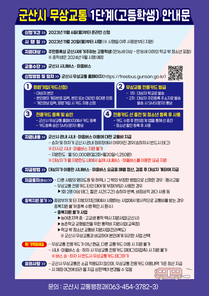 | 180 | 군산시 고등학생 무상교통 시행 안내 |